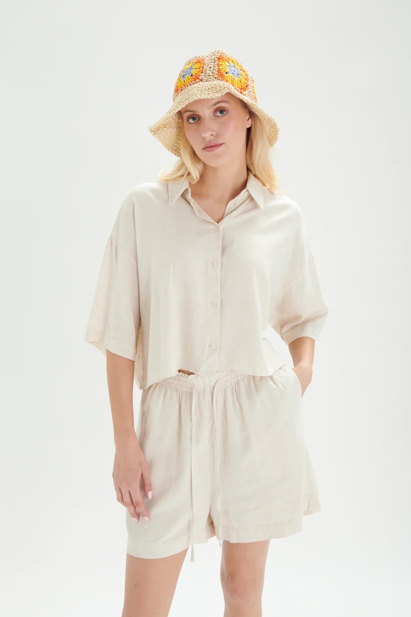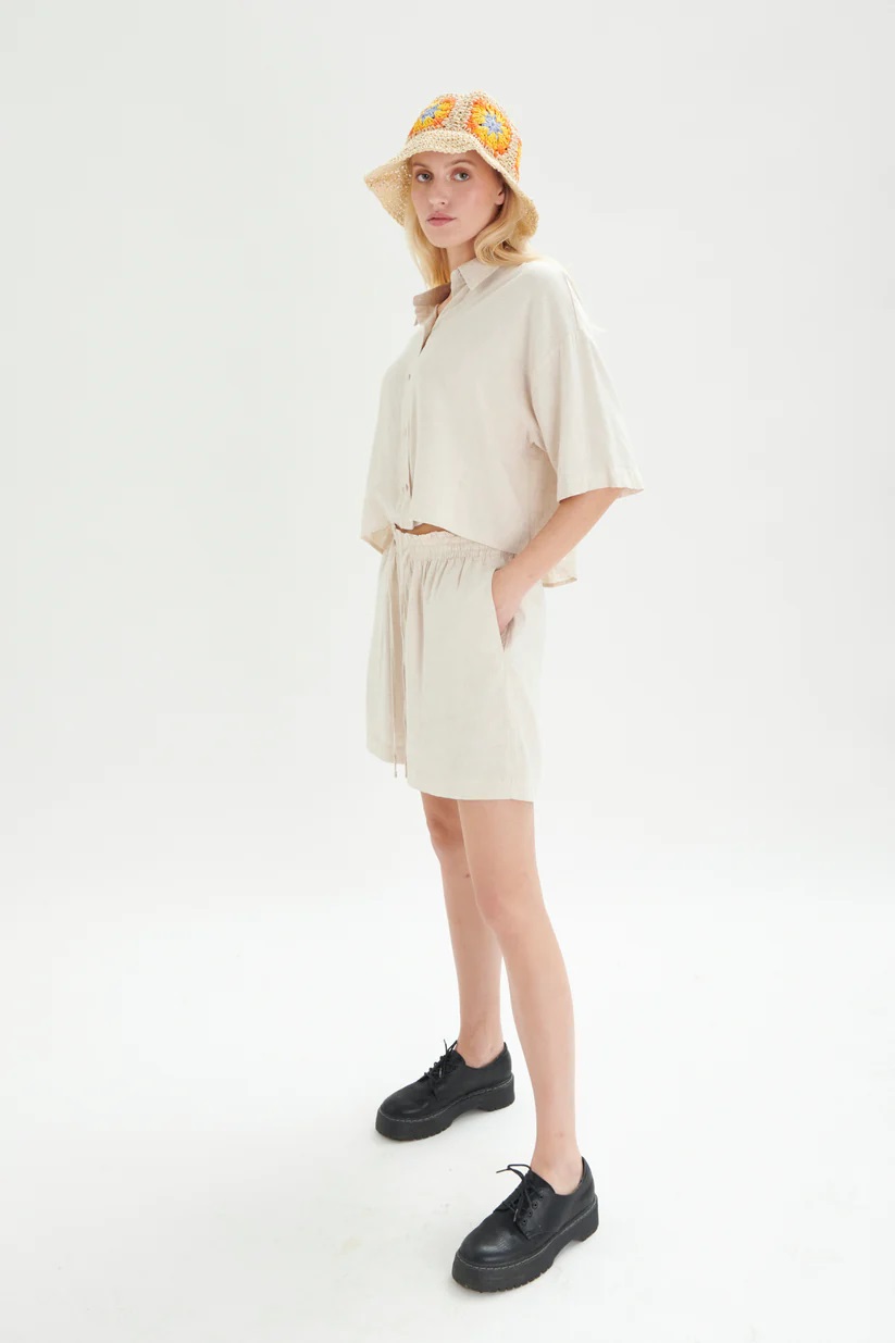 24Colours Λινή Βερμούδα 60819a/Beige