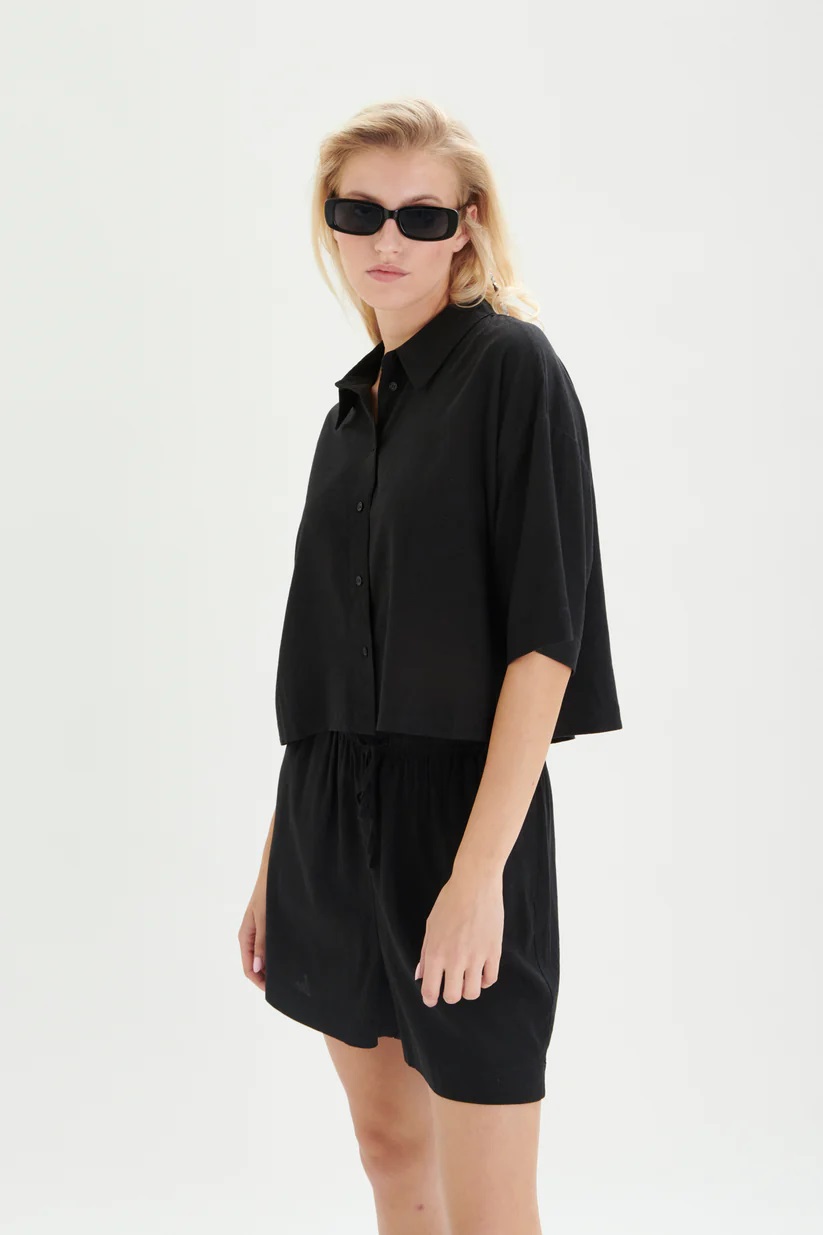 - Shorts in black with elastic waistband