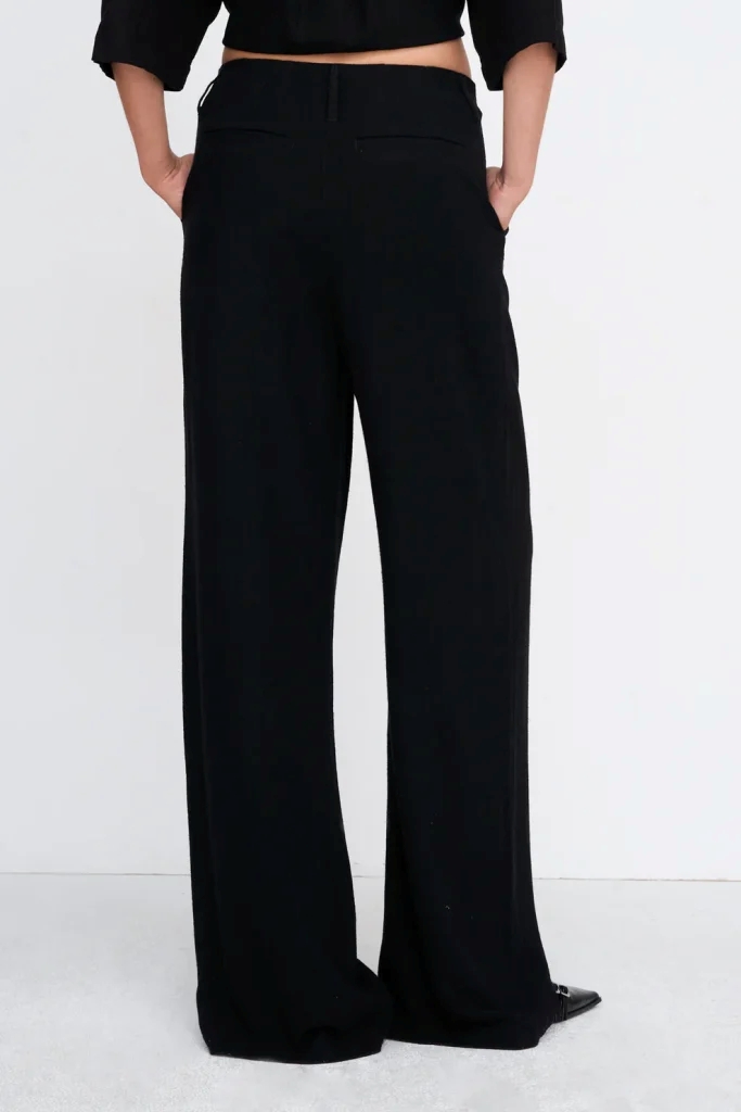 Long trousers in black, with pleats and wide legs