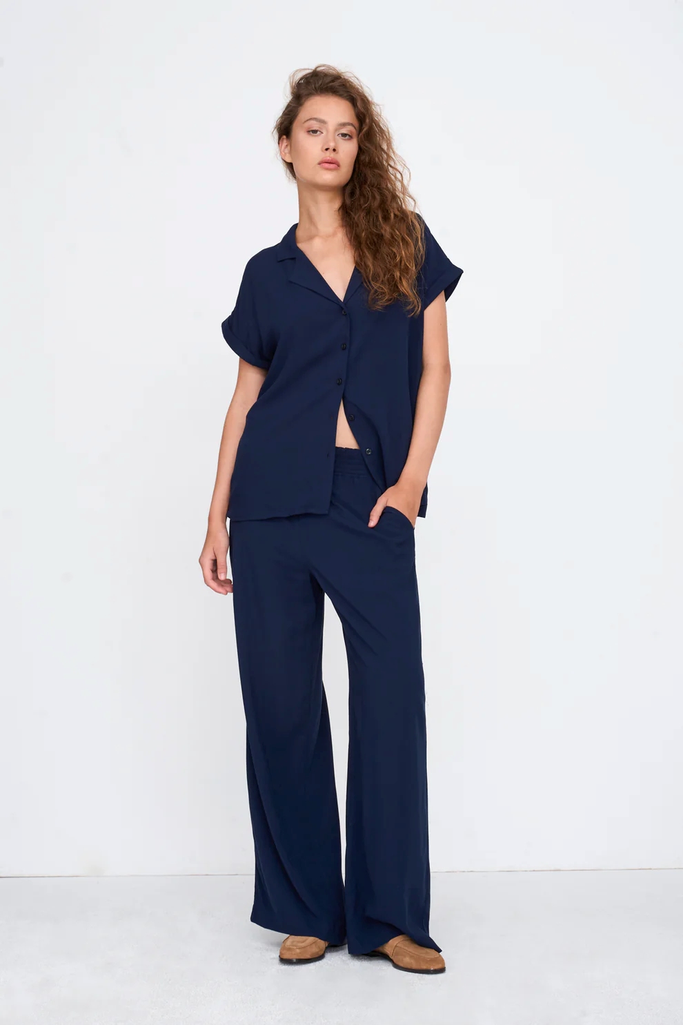 Pull-on trousers with elastic cuffs in