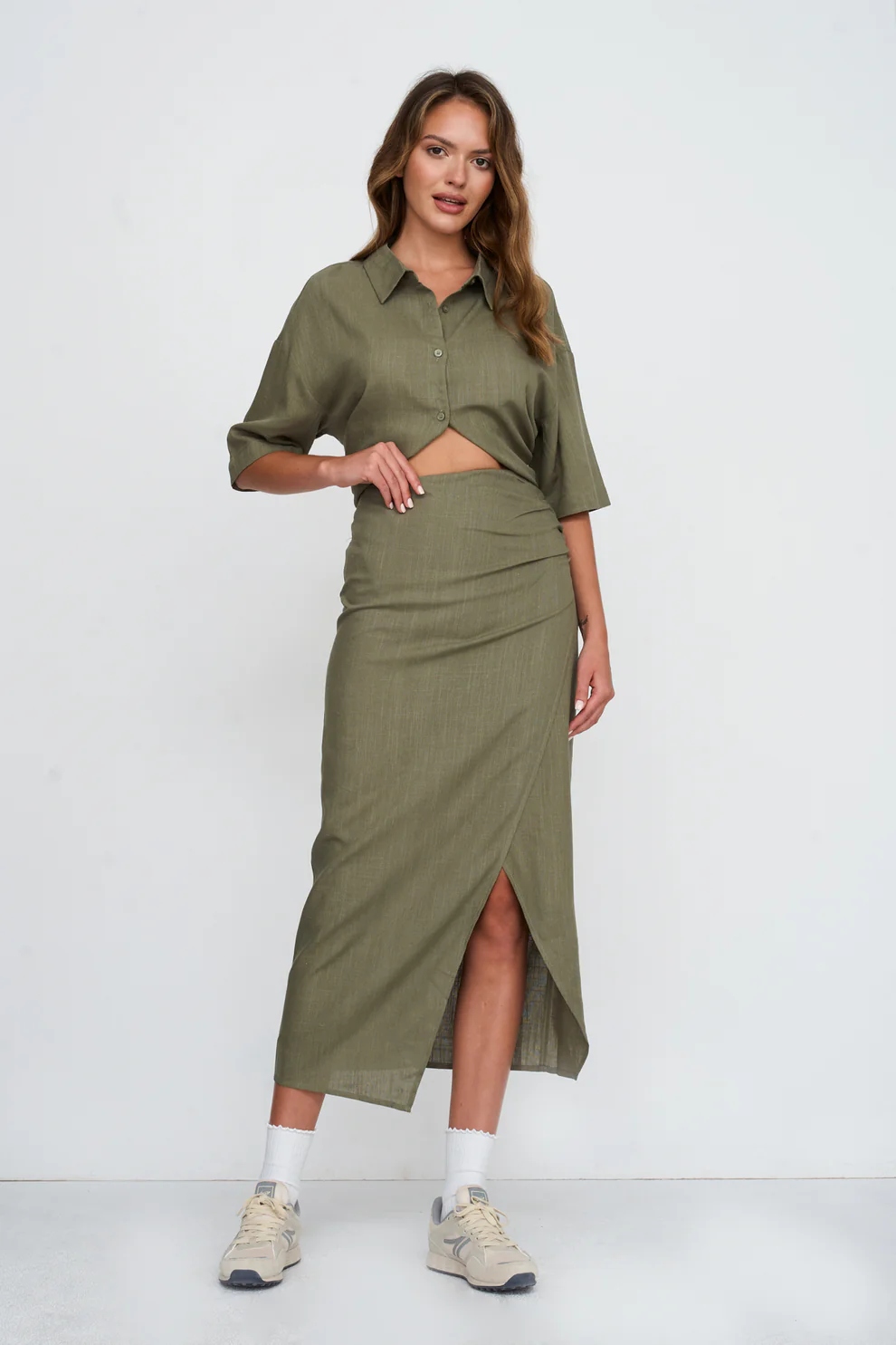 24Colours Λινό Πουκάμισο 30472b/Khaki