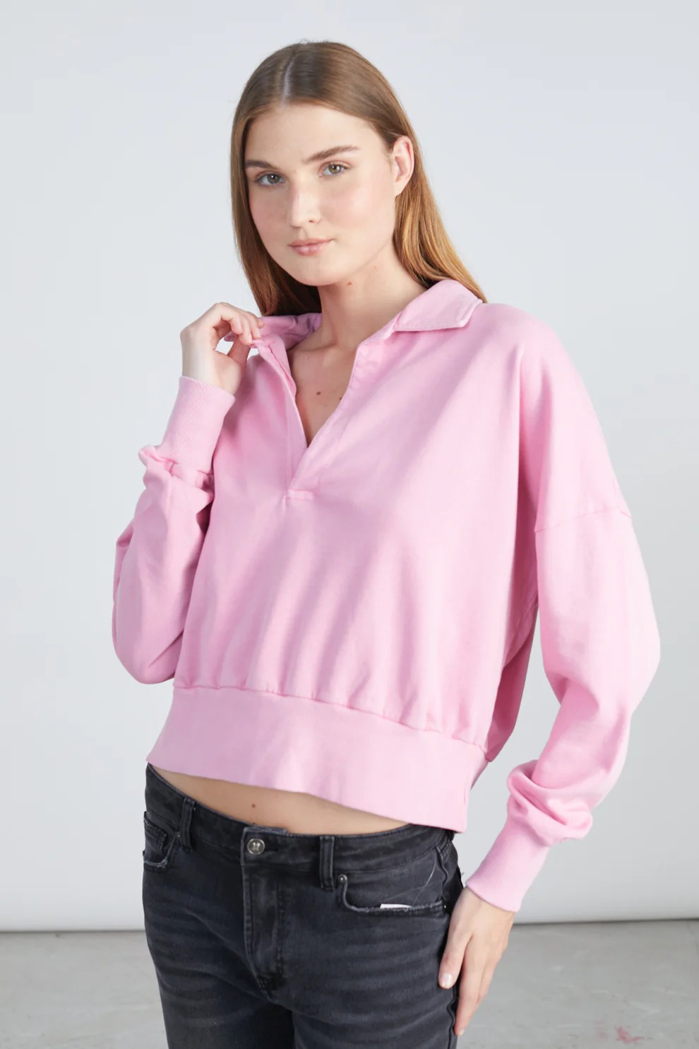 Pink collared sweatshirt