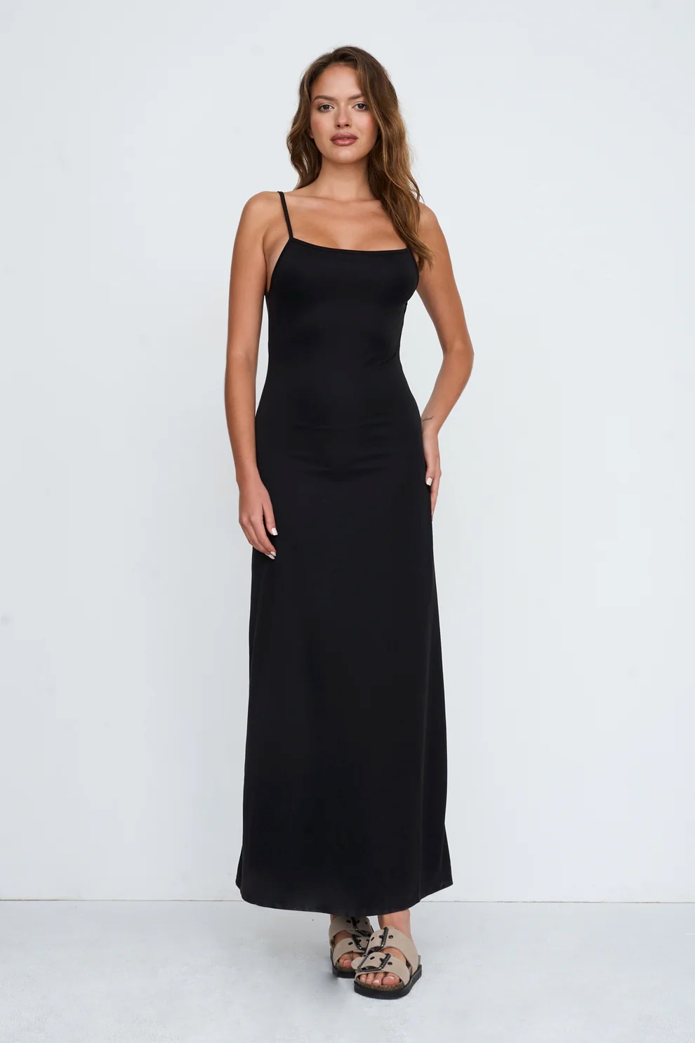 Bodycon dress with spaghetti straps in black