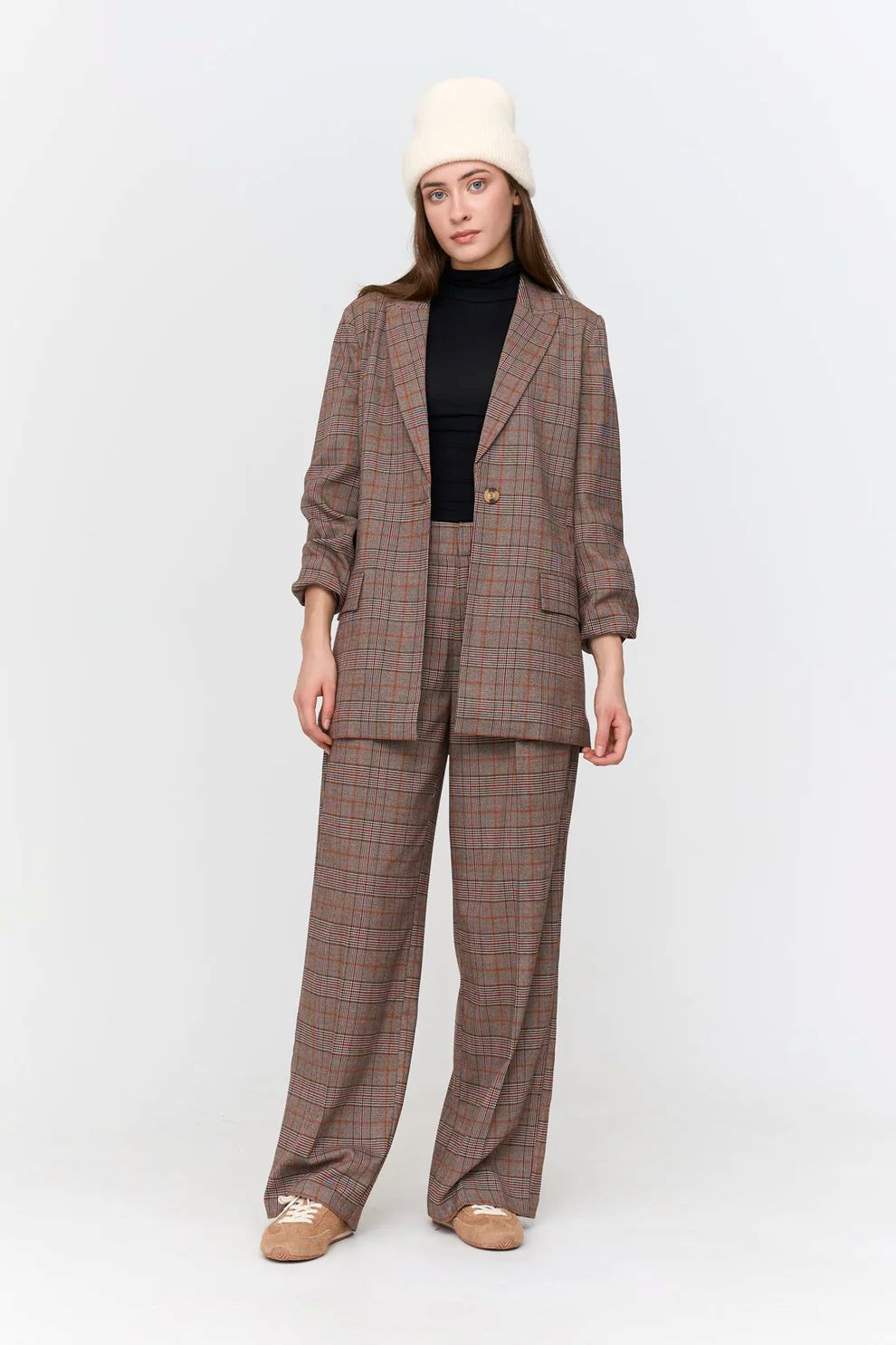 Wide-cut checkered suit trousers