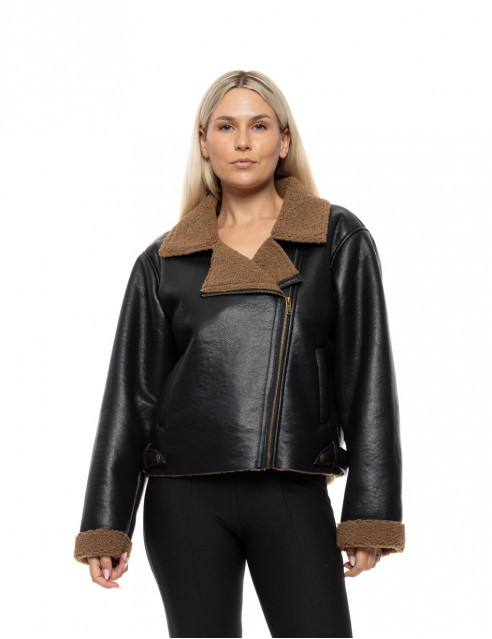 Biston Γυναικείο κοντό μπουφάν από δερματίνη