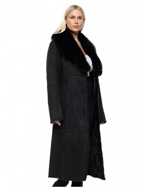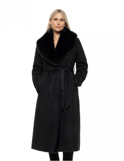 Biston Γυναικείο μακρύ παλτό καστόρ και συνθετική γούνα