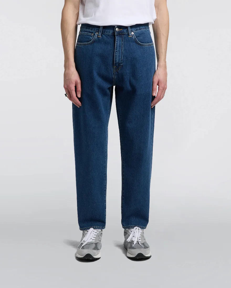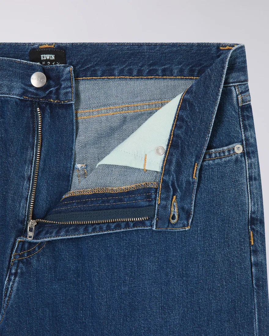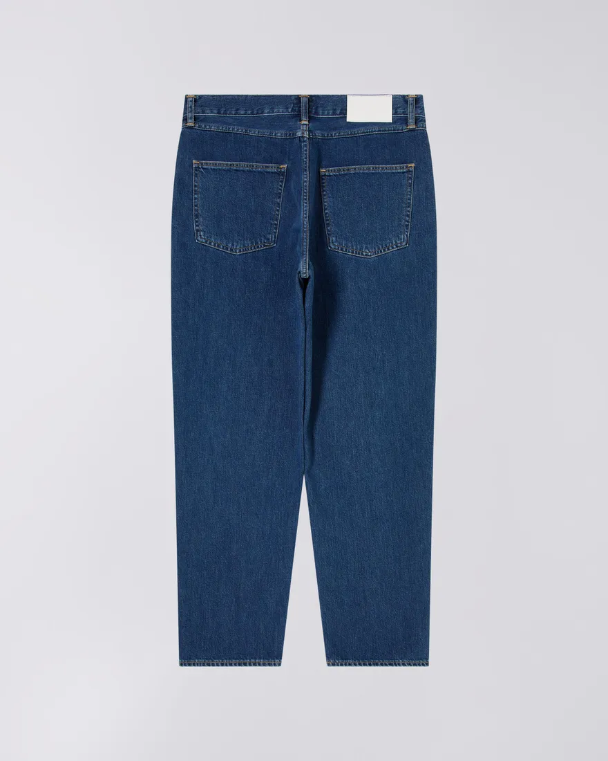 The EDWIN Cosmos Pant is a relaxed silhouette with a cropped and tapered leg, has a mid-rise and four pockets. They are made of a 11.6oz Nicola Blue Cotton Denim Fabric. The round cut thighs and hips provide a comfortable and spacious fit.