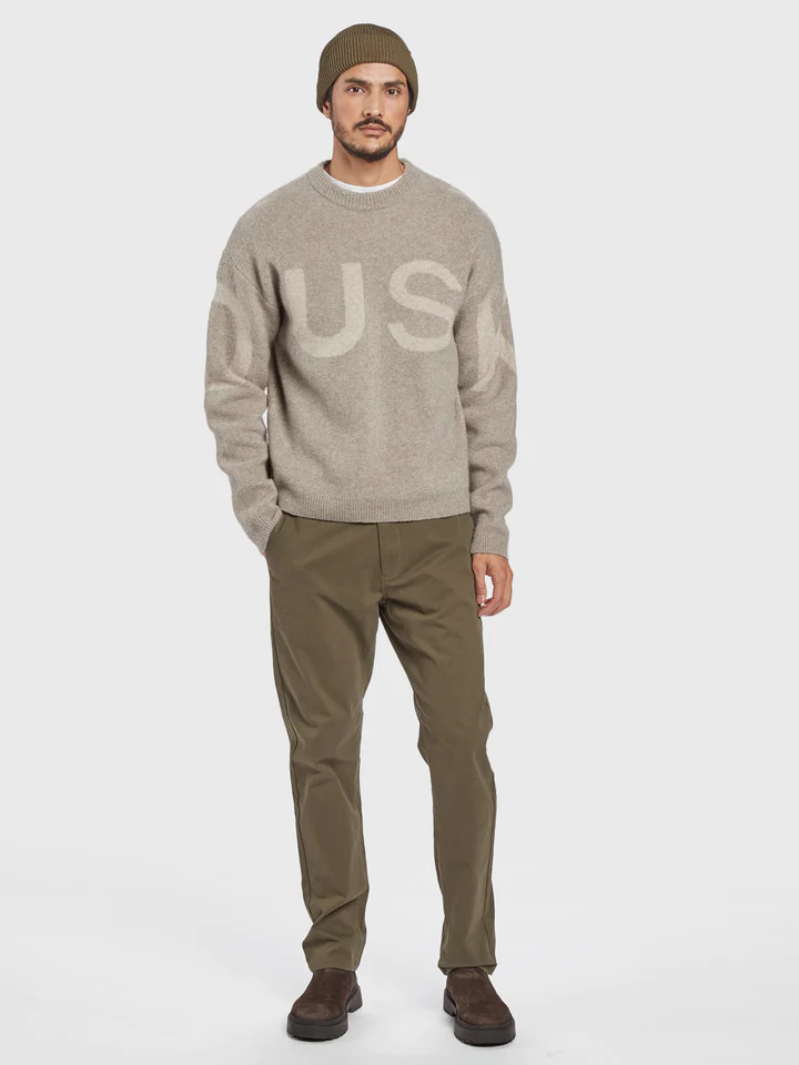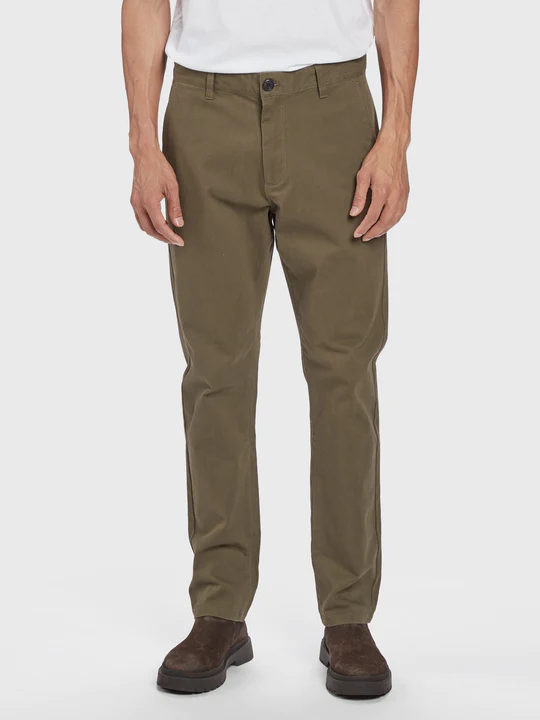 An elegant and classic chino pant with a regular fit, French pockets, and logo rivet at the right back pocket.
