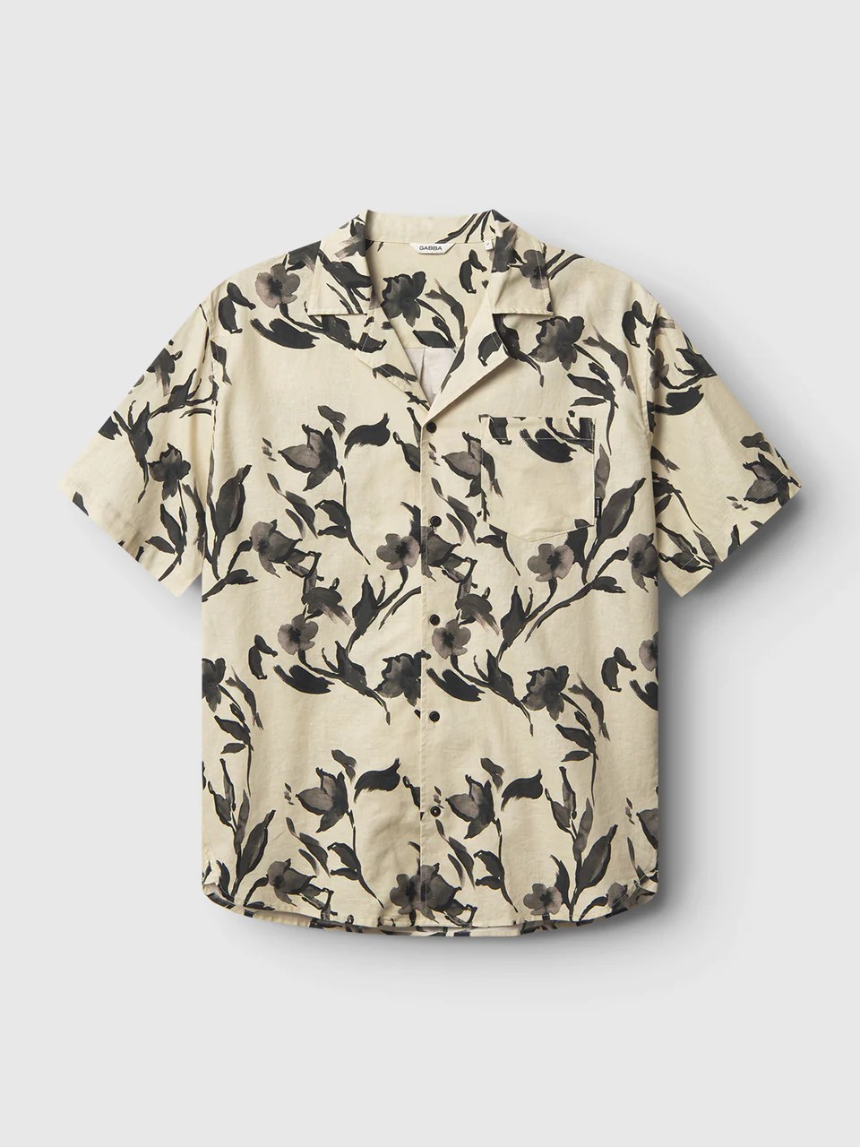 This premium shirt is crafted from 55% Linen and 45% Cotton, ensuring superior comfort and durability. It features a fluctuating flower allover print on a rich, exclusive linen quality.