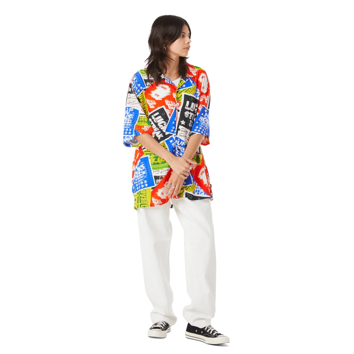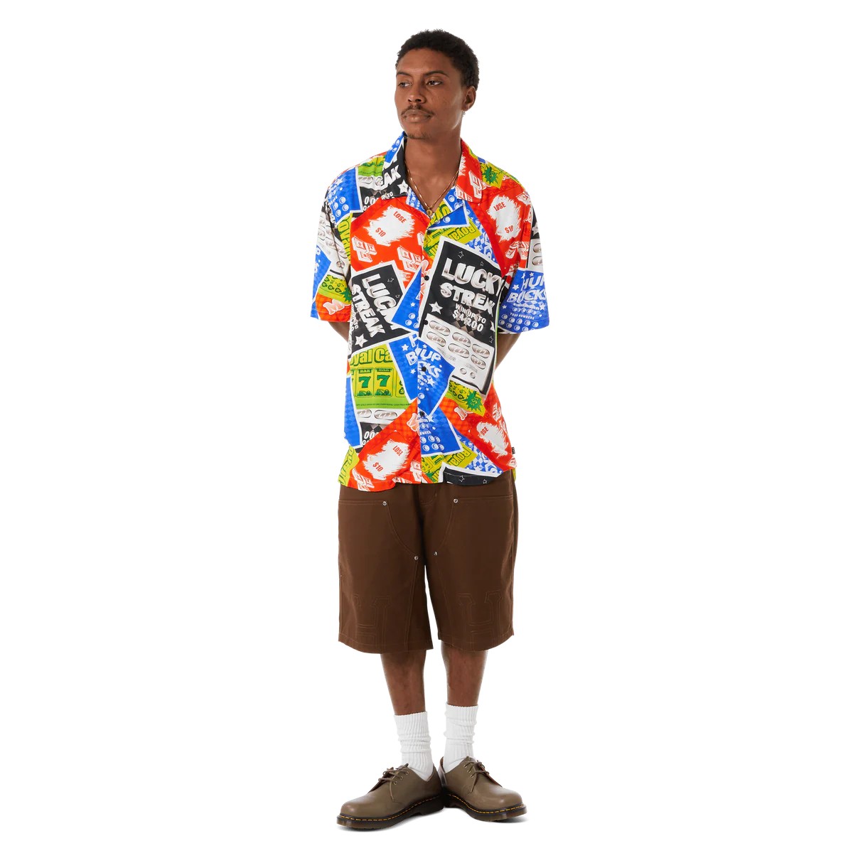 An ode to corner store scratchies, the Lucky S/S Resort Shirt features a comfortable rayon construction with side vent slits and all-over print Lucky artwork.