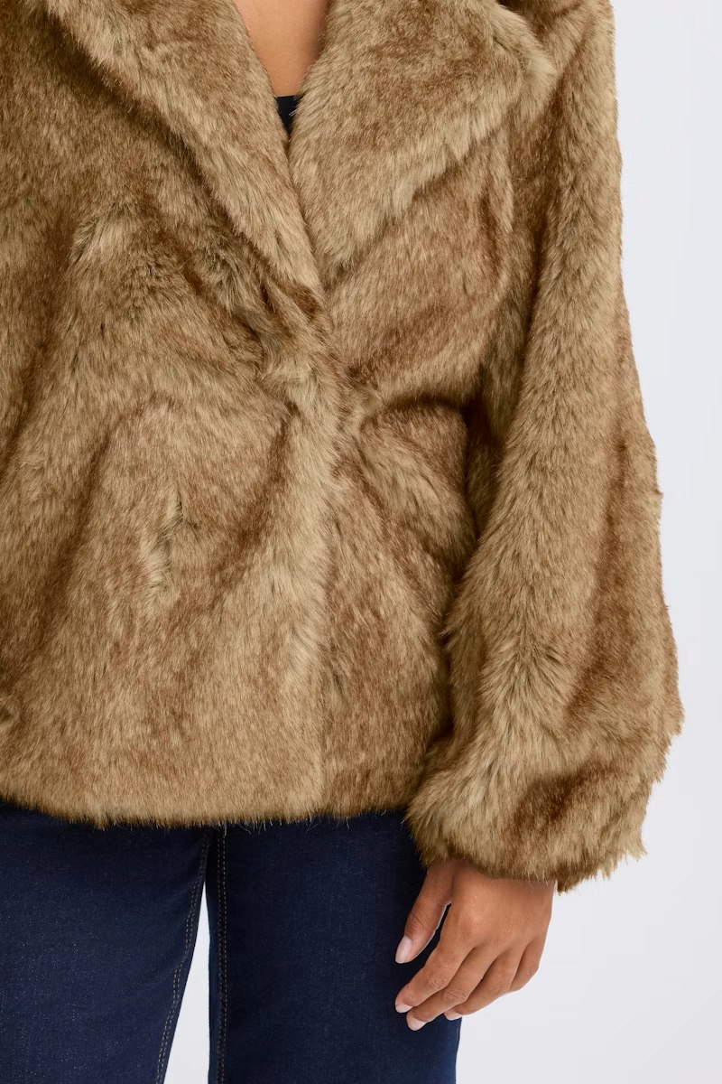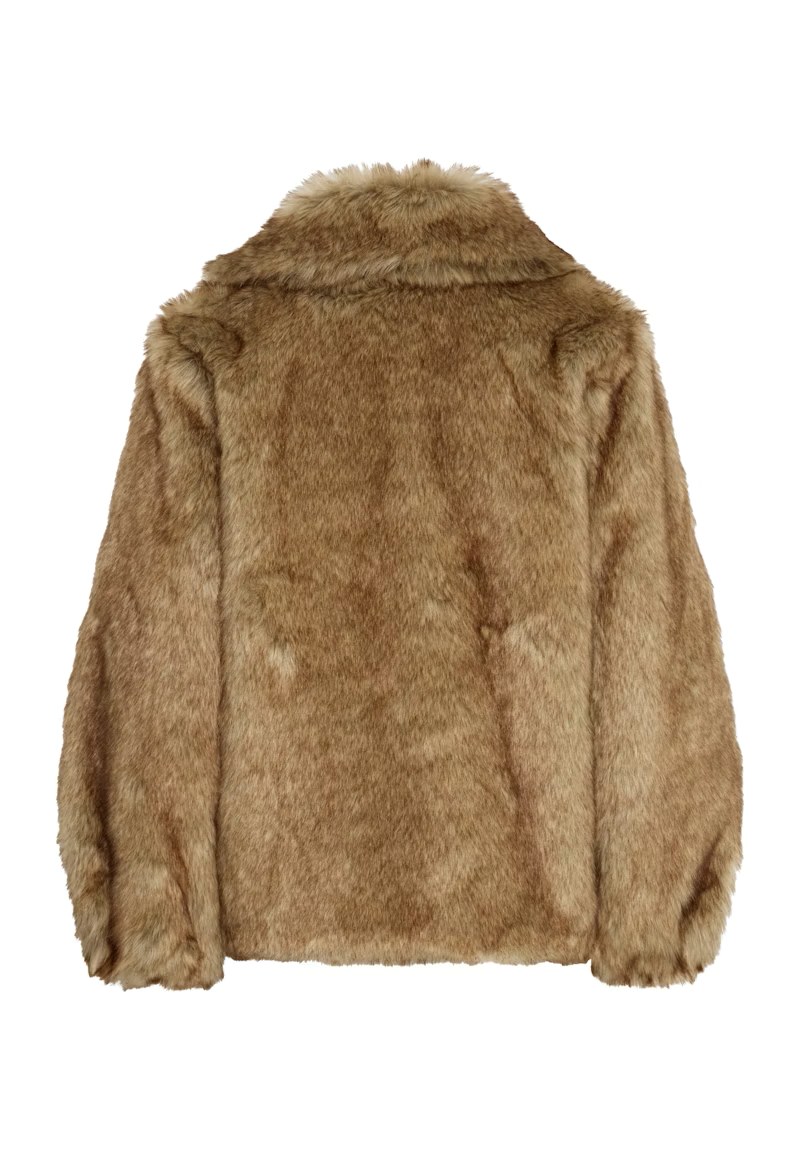 Faux fur jacket for women, designed for a relaxed fit and ultimate comfort. Features a wide notched collar, long sleeves, and hip-length cut. Suitable for both day and evening wear.