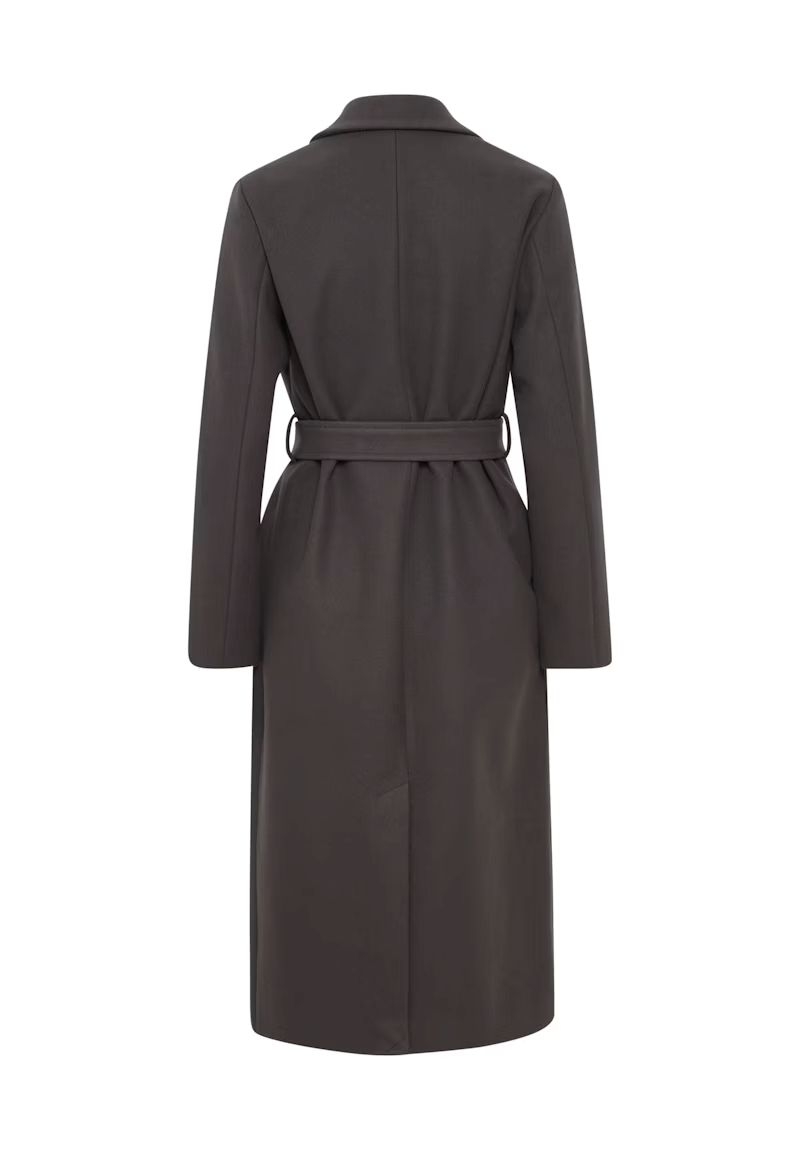 This coat combines a comfortable fit with an elegant silhouette. The wide collar and the waist tie create a feminine and sophisticated look that can easily be styled for both everyday wear and formal occasions.