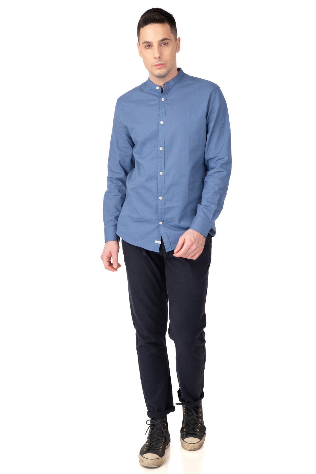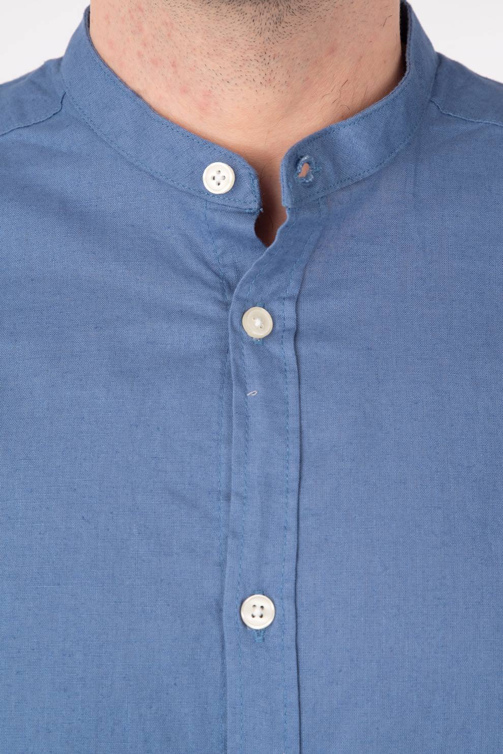 Men’s linen mao collar long sleeve shirt.