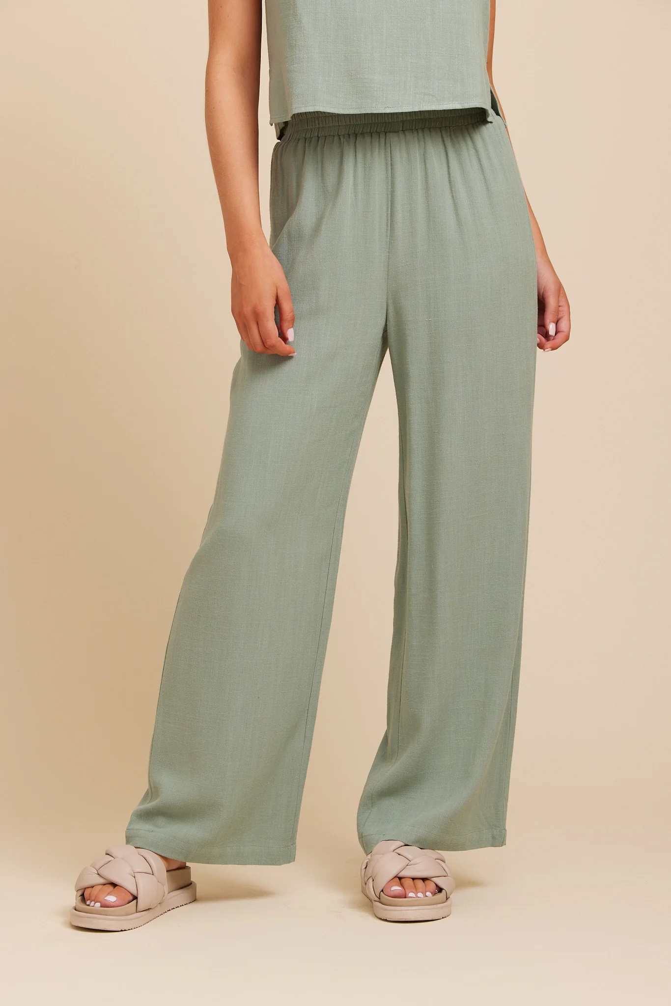 Jane Linen Pant is crafted from a soft linen/viscose blend and comes in a straight full-lentgh model with comfortable elastic waistband.