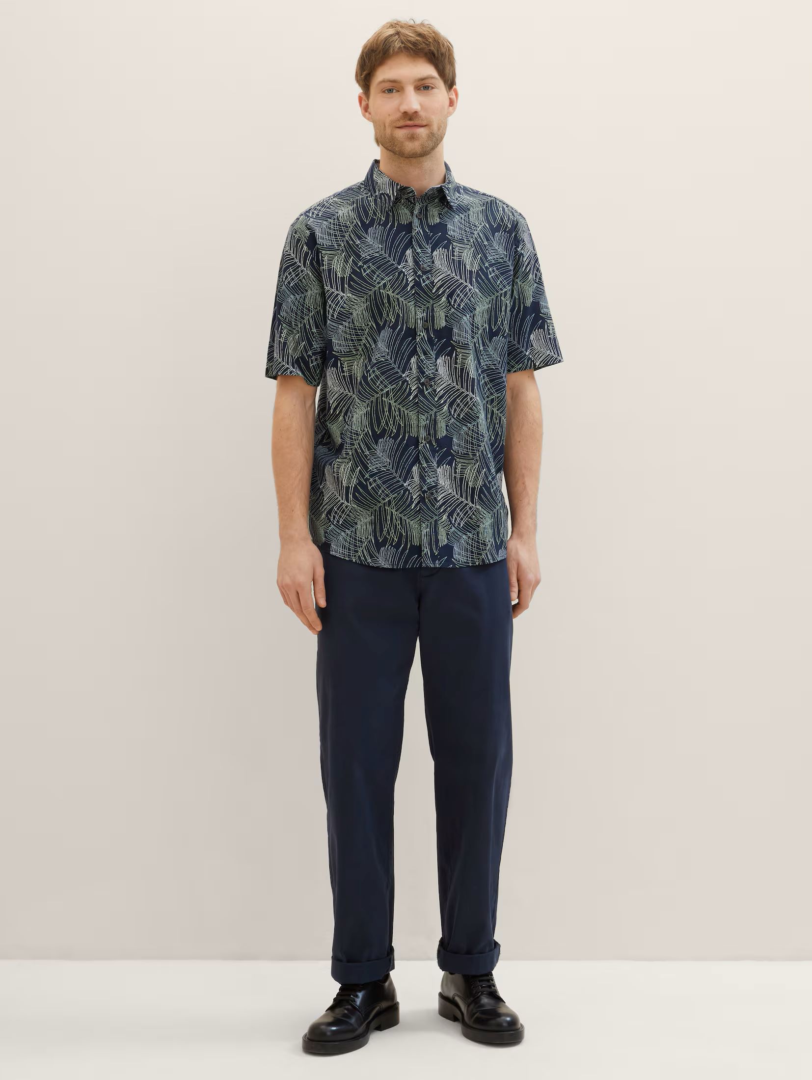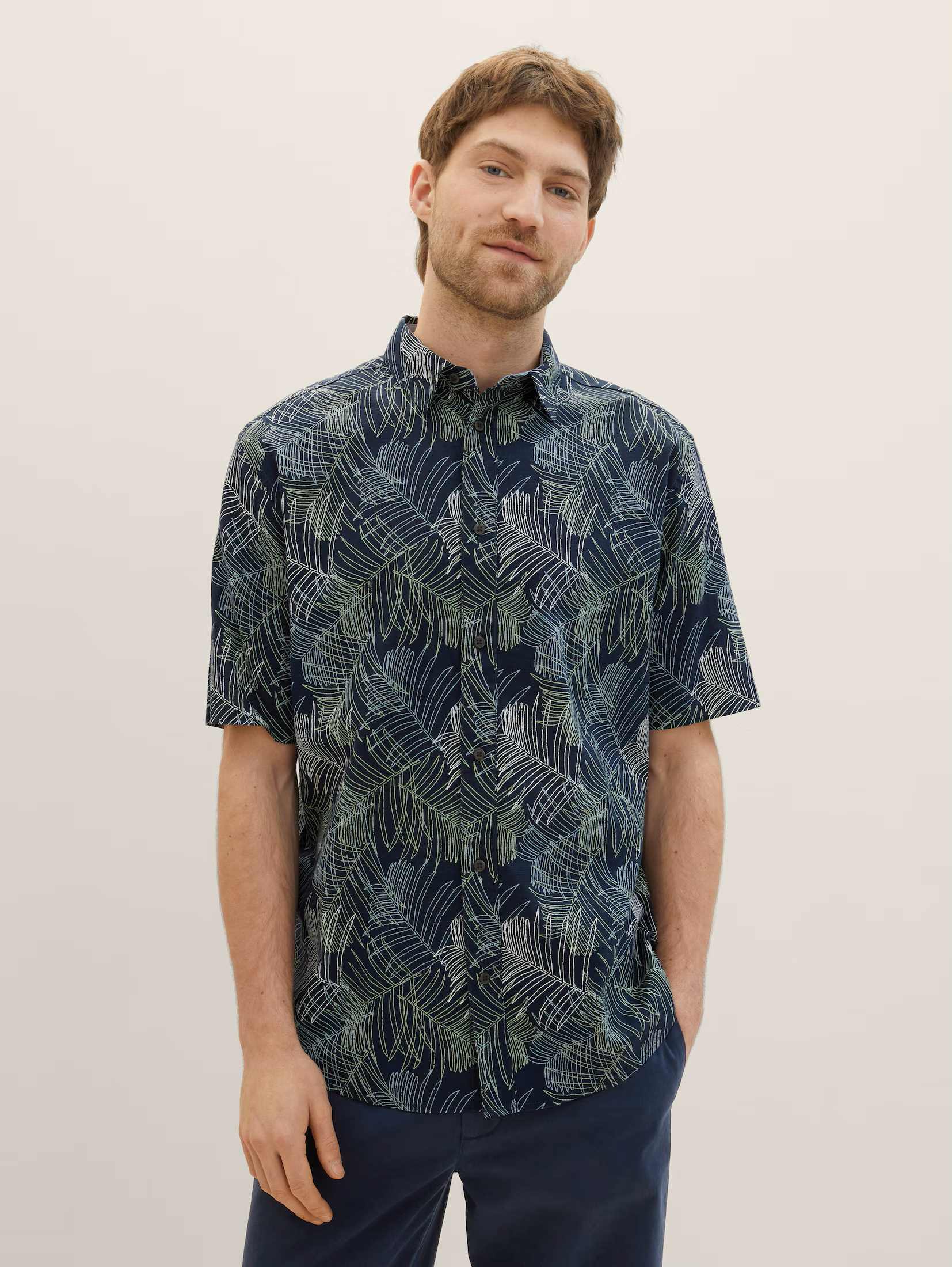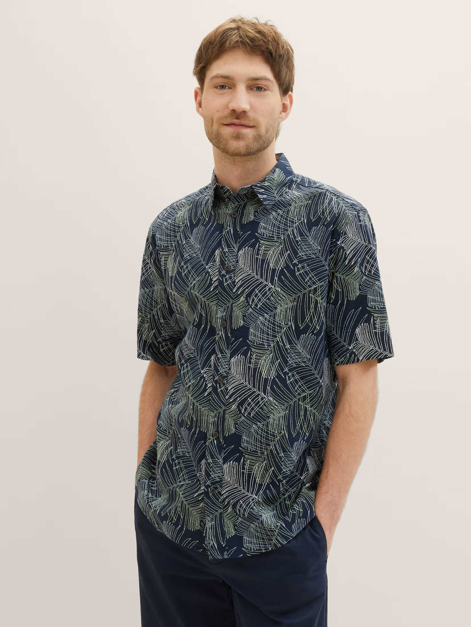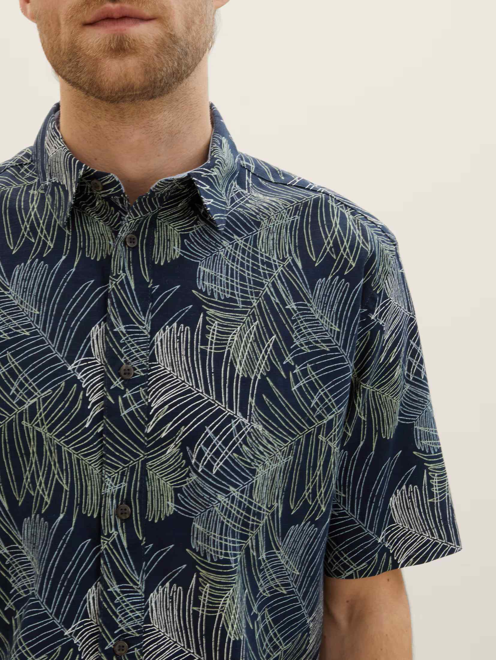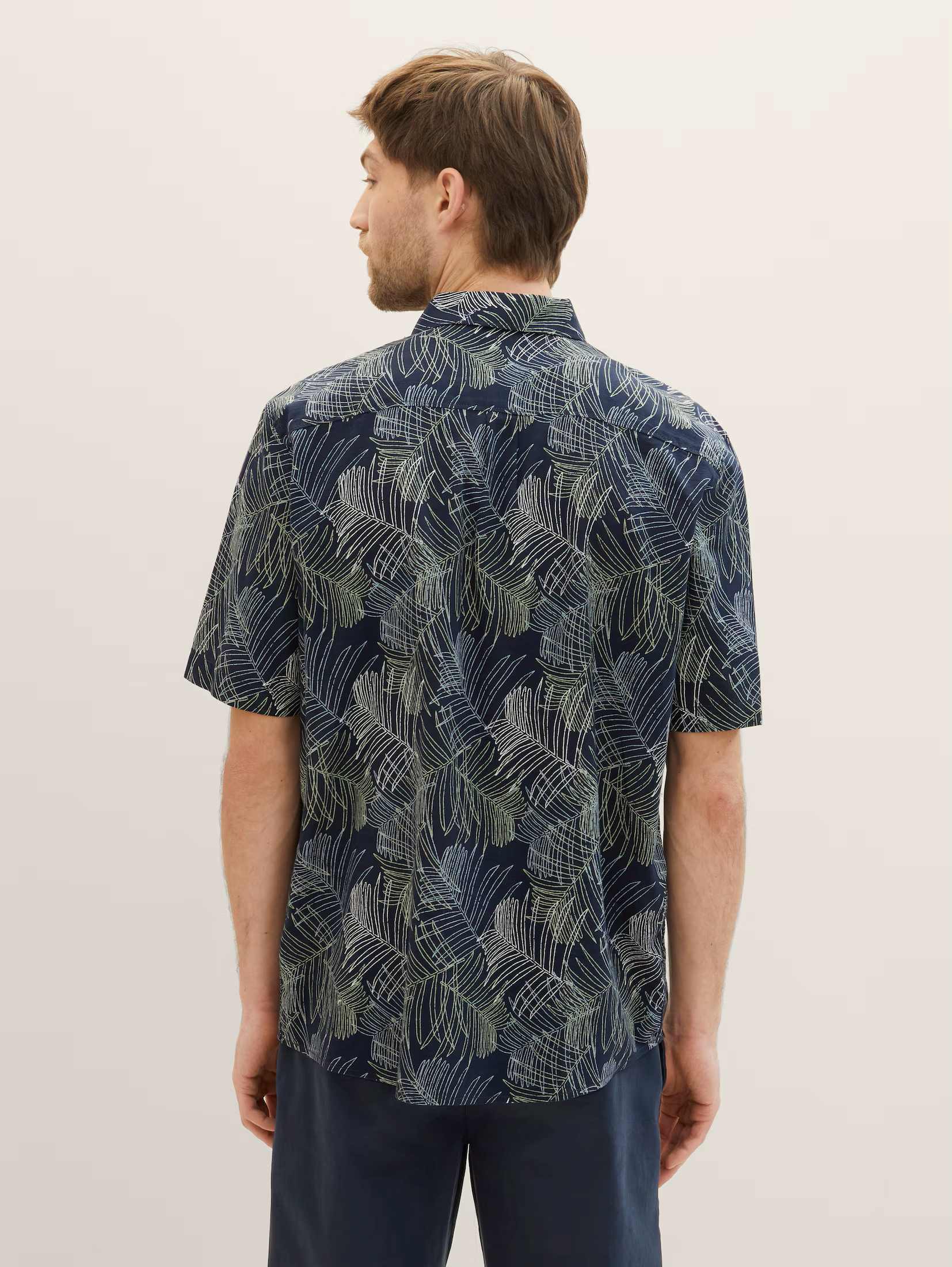 Tom Tailor Κοντομάνικο Πουκάμισο 1040128-35095/Navy Moulticolor Leaf Design