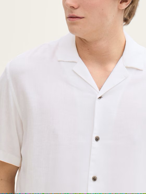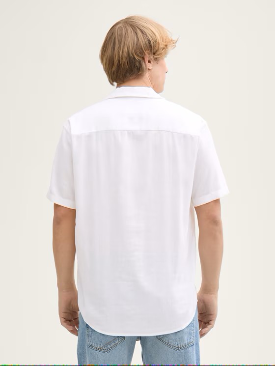 Tom Tailor Λινό Κοντομάνικο Πουκάμισο 1045185/20000 White