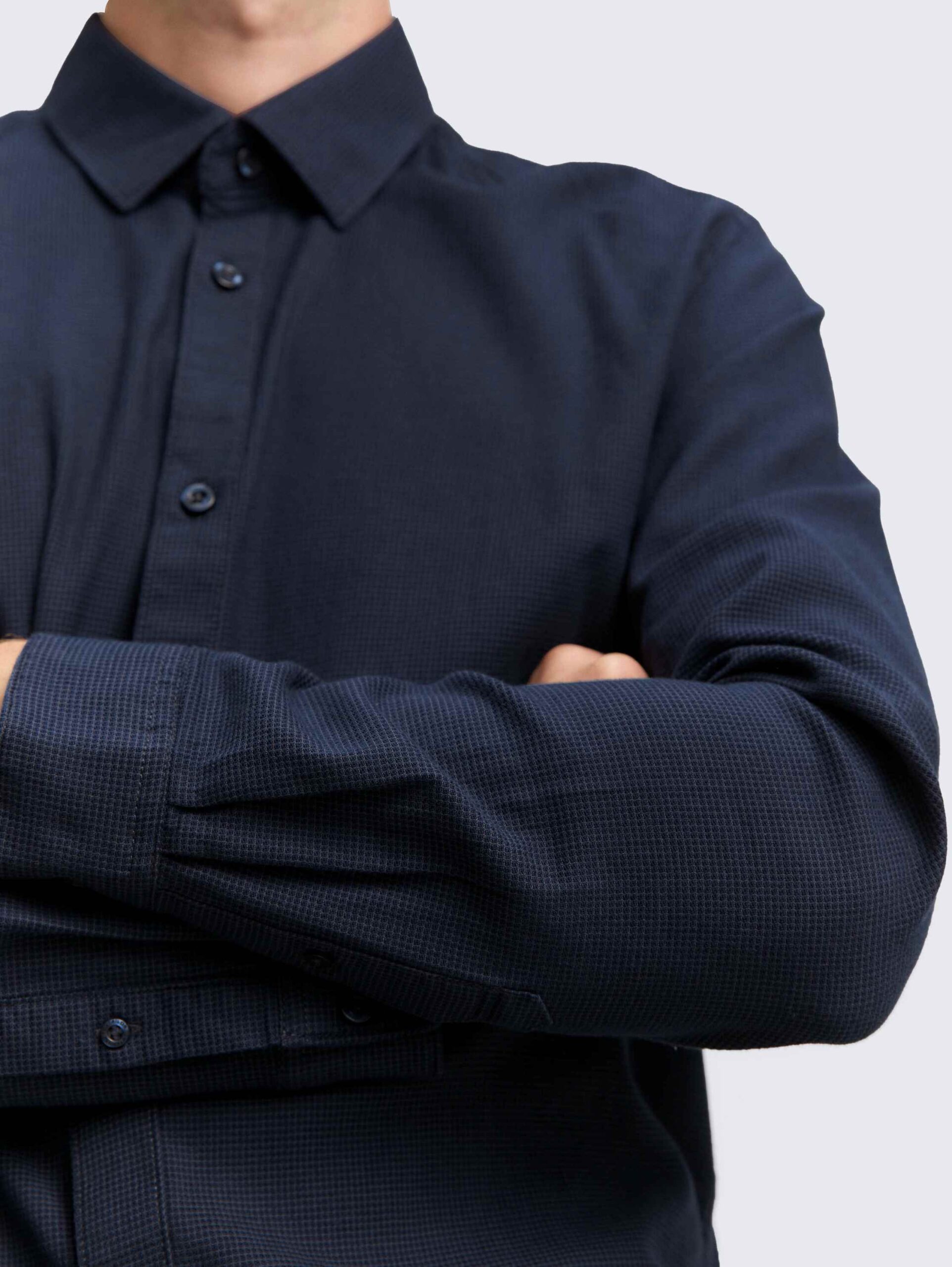 Patterned shirt with stretch for greater freedom of movement and a comfortable fit. Made from a textured dobby fabric in cotton with elastane.