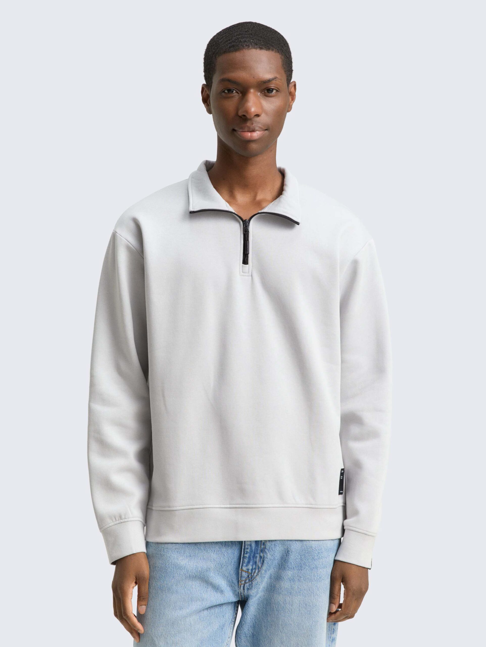 - Sweatshirt with Troyer collar and logo badge at the hem. With slightly brushed lining for a warm and soft feel.
