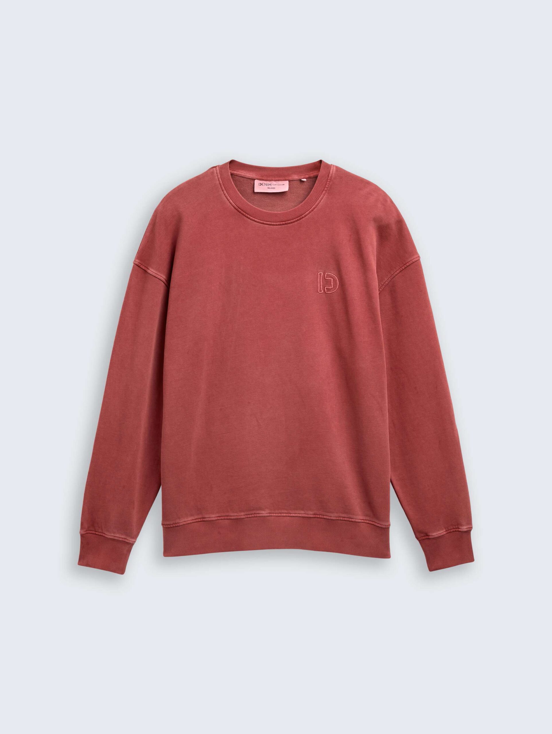 - Crewneck sweatshirt with an overdye effect for a worn look and embroidered logo on the chest.