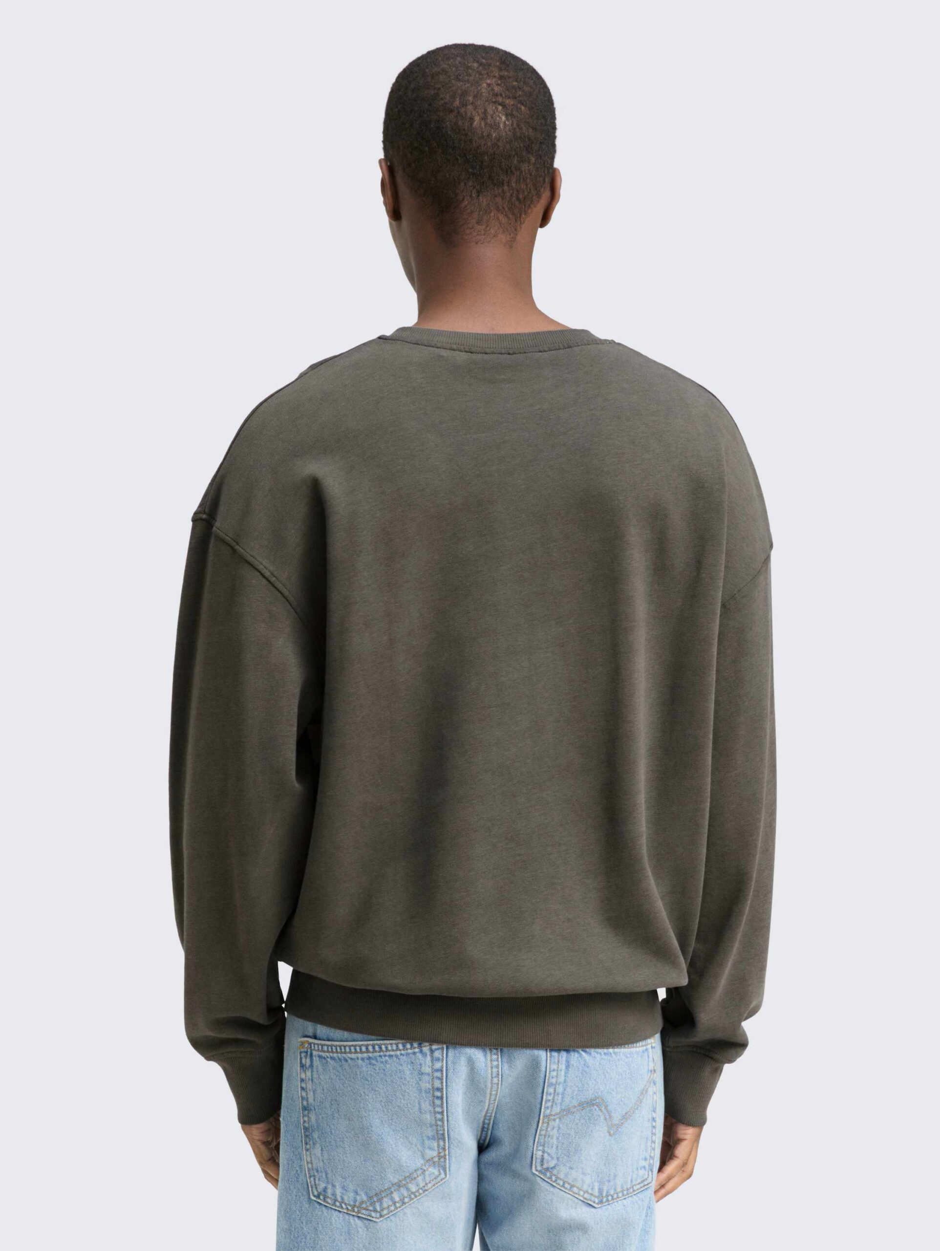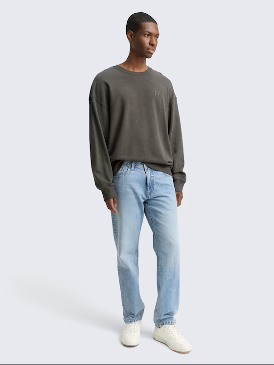 - Crewneck sweatshirt with an overdye effect for a worn look and embroidered logo on the chest.
