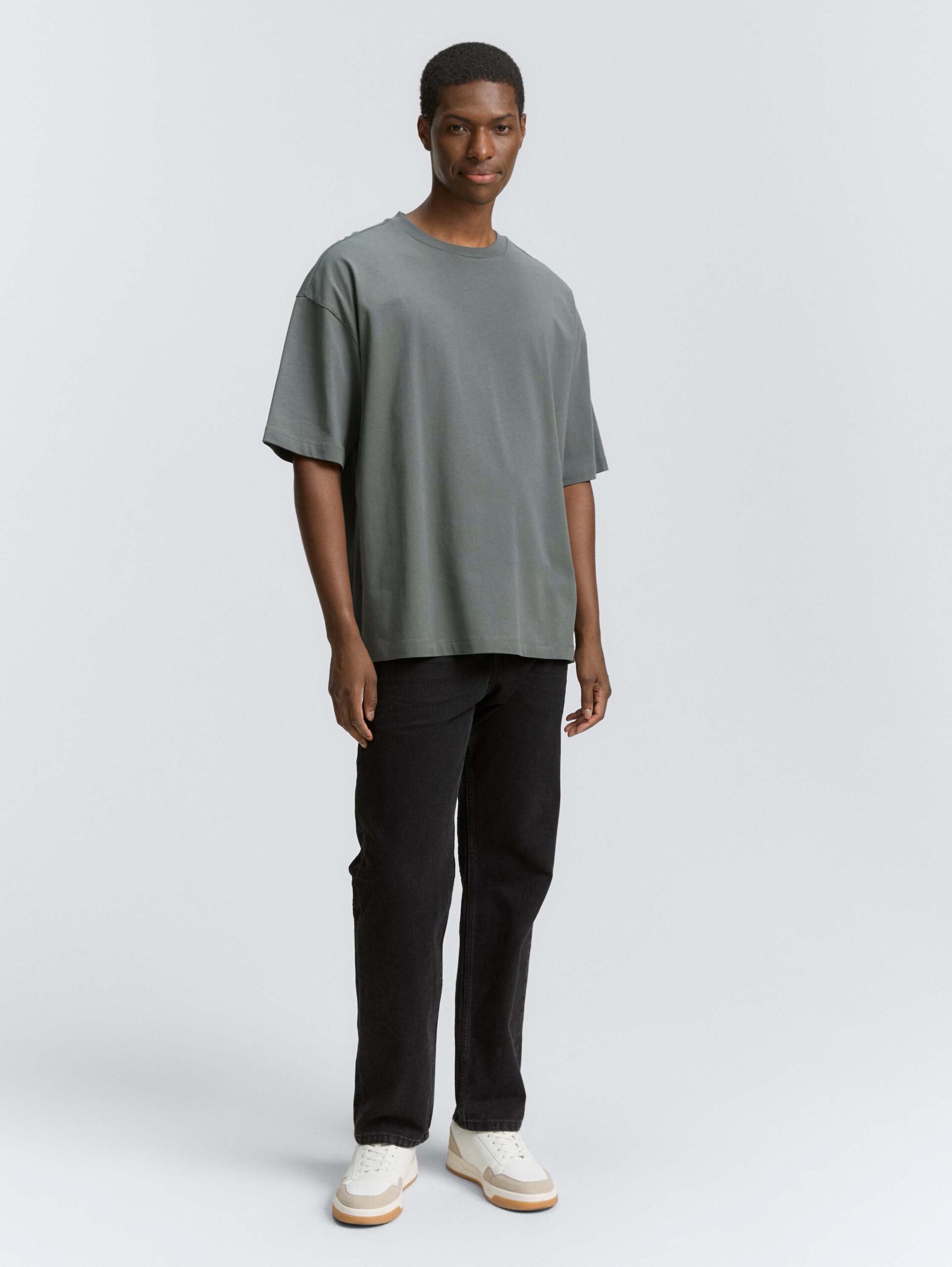 Basic oversized T-shirt in plain colours. Made from opaque heavy jersey cotton fabric.