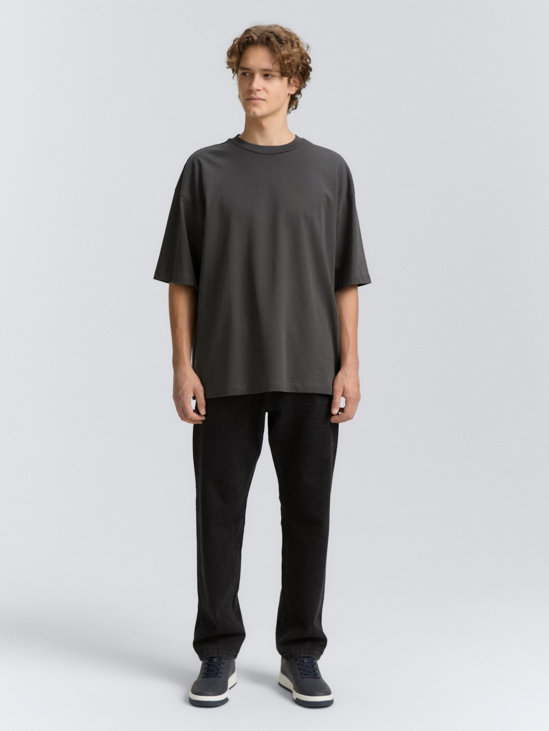 Basic oversized T-shirt in plain colours. Made from opaque heavy jersey cotton fabric.