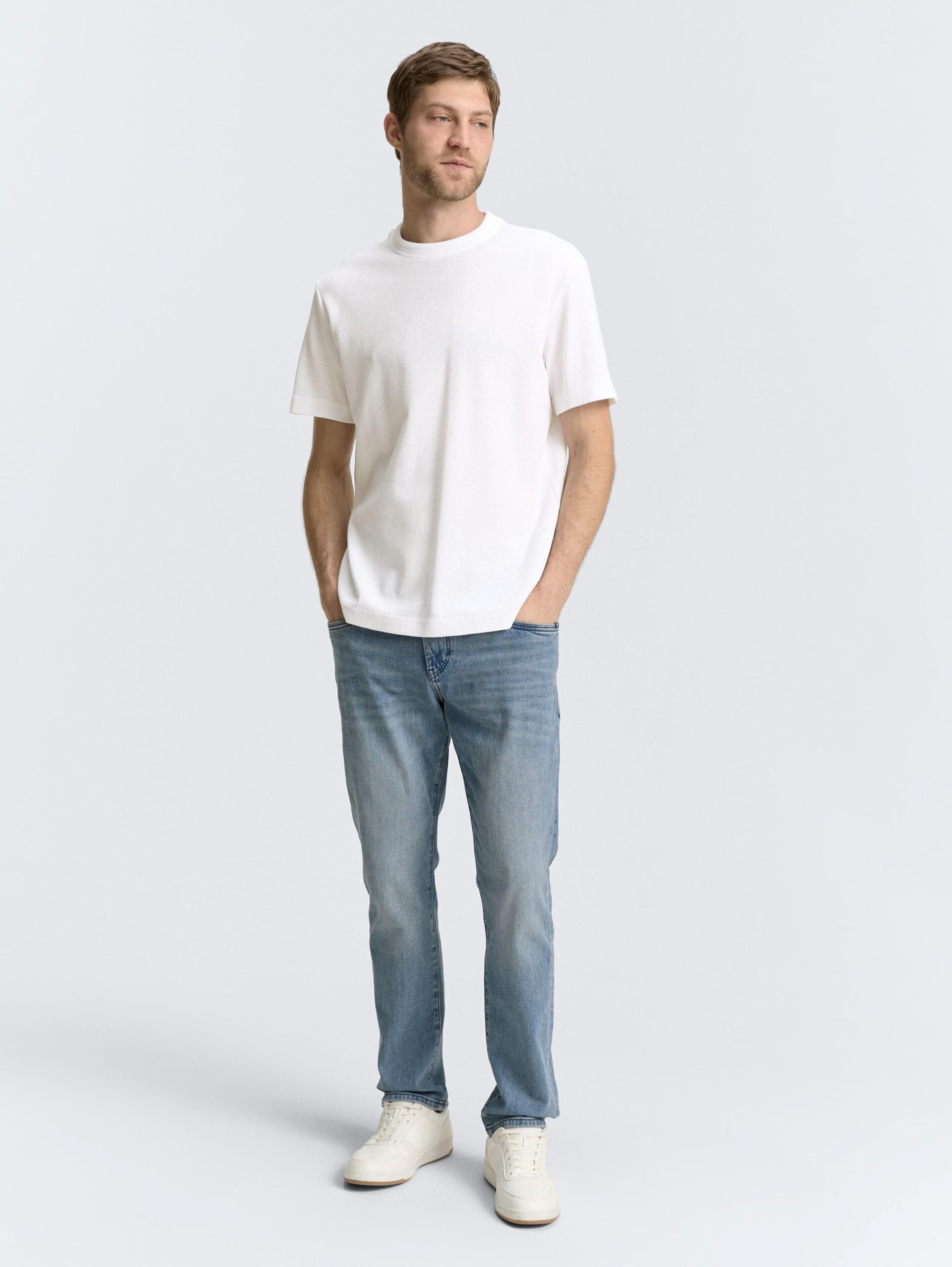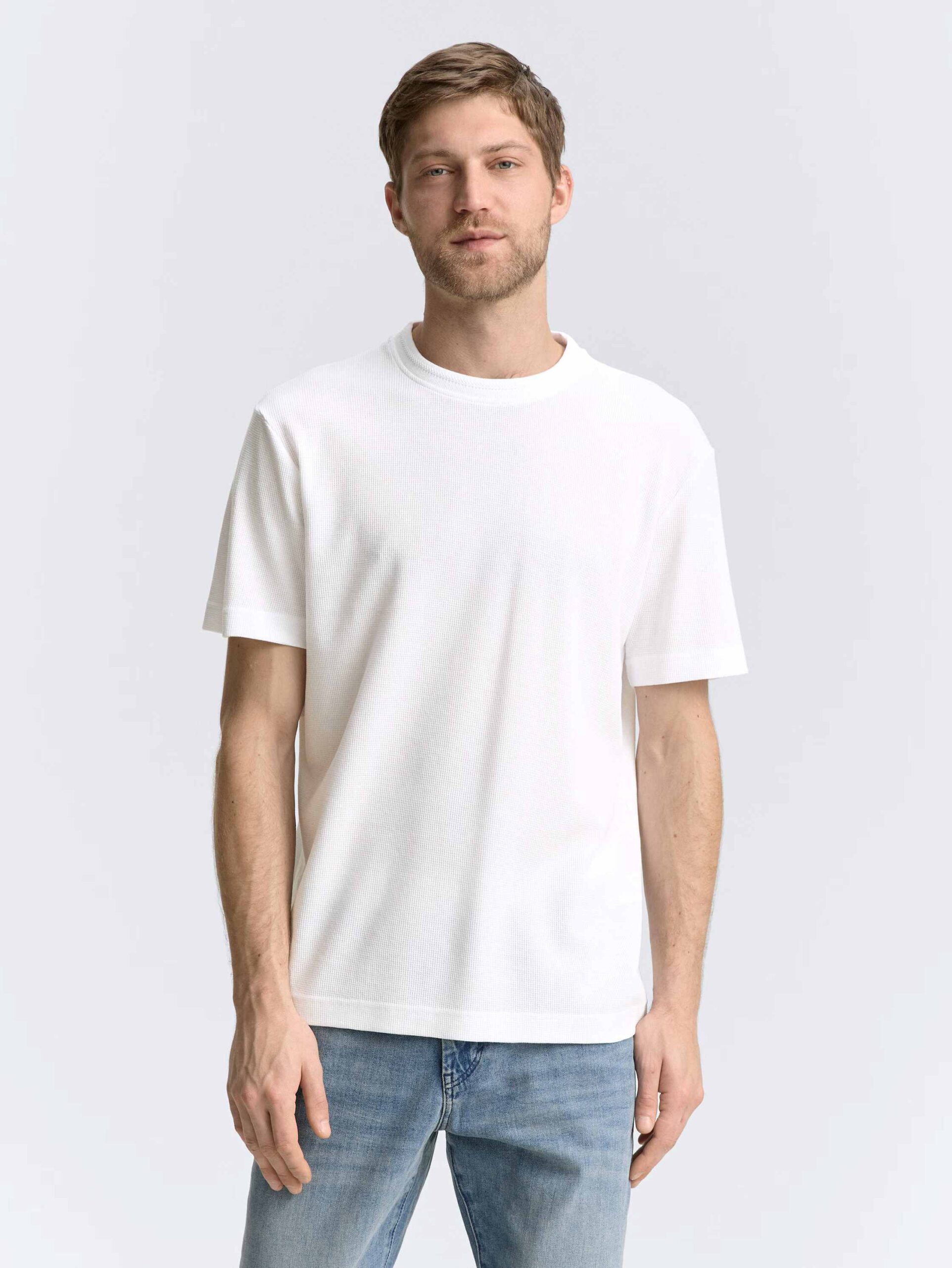 - Basic T-shirt in solid colours made from a textured jersey fabric with a waffle look