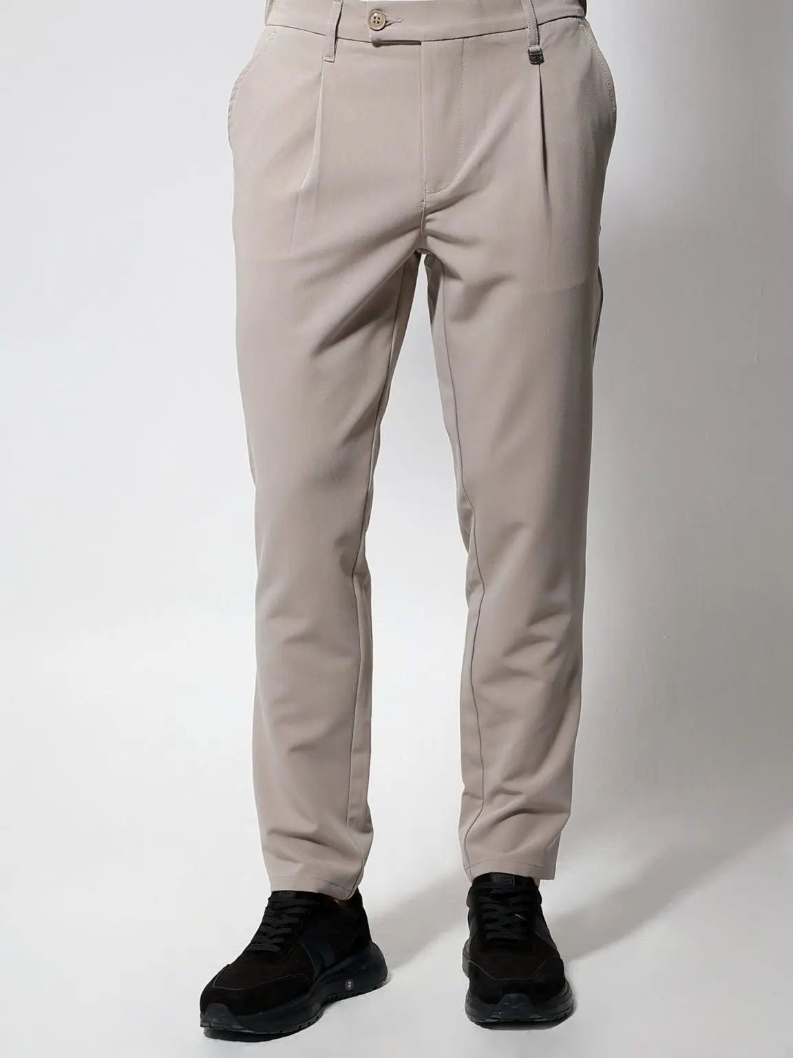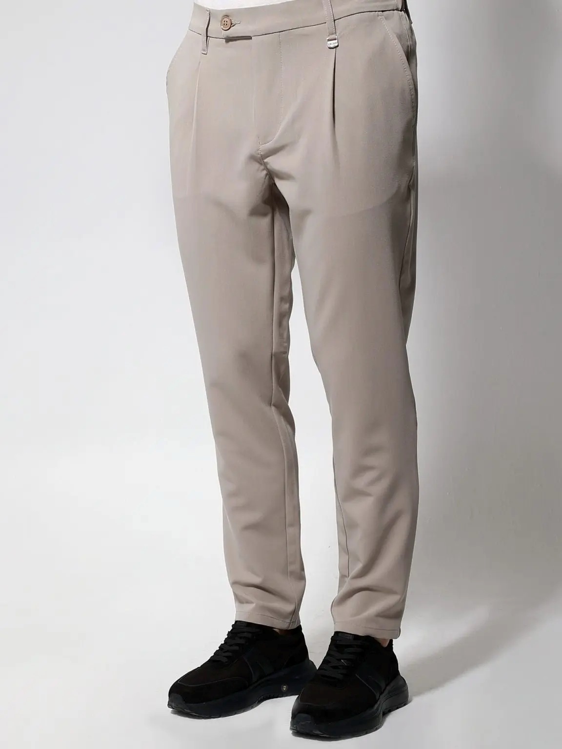 Ανακαλύψτε το άνετο και στιλάτο ανδρικό παντελόνι που θα ανανεώσει την γκαρνταρόμπα σας. Κατασκευασμένο με πιέτες μπροστά και λάστιχο στο πίσω μέρος για απόλυτη εφαρμογή, αυτό το φορμοπαντέλονο συνδυάζει άνεση με κομψότητα.
