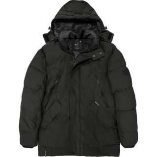 Casual, really warm winter puffy jacket. With large, patched hip pockets with asymmetric flaps and comfortable side panels lined with warm teddy. On the chest lie closable welt pockets. The inner collar made of high-quality faux fur can be detached. The hood is removable and adjustable in two directions. In the sleeves Cornwall has additional knit cuffs, which protect against wind. A belt in the back adjusts the waist size. Special eye-catchers are the long Zipperpull with red logo and the large Wellensteyn logo on the sleeve. It is easy to clean and machine washable at 30 ° C, but must not be treated with fabric softener or dry cleaned.